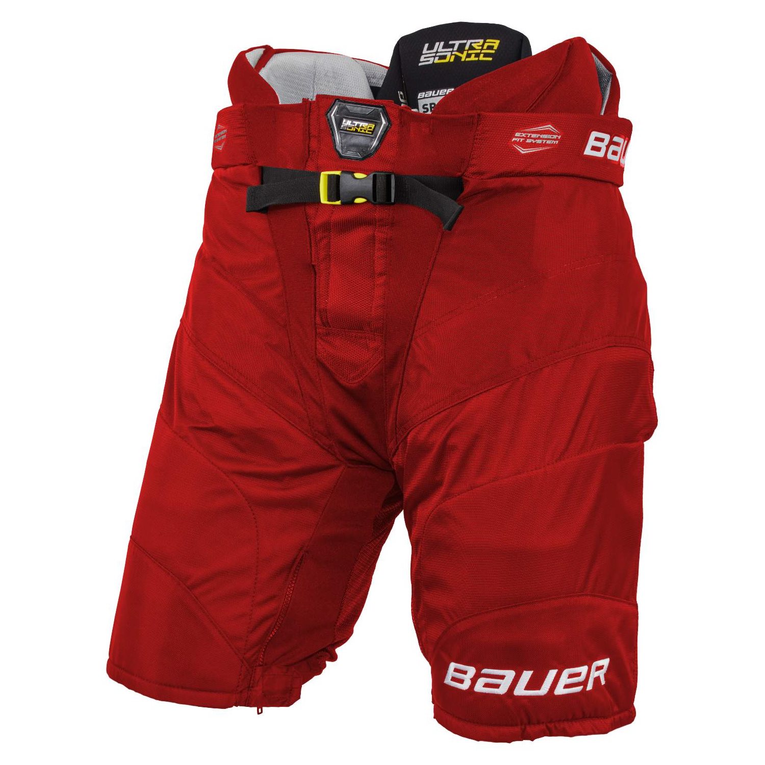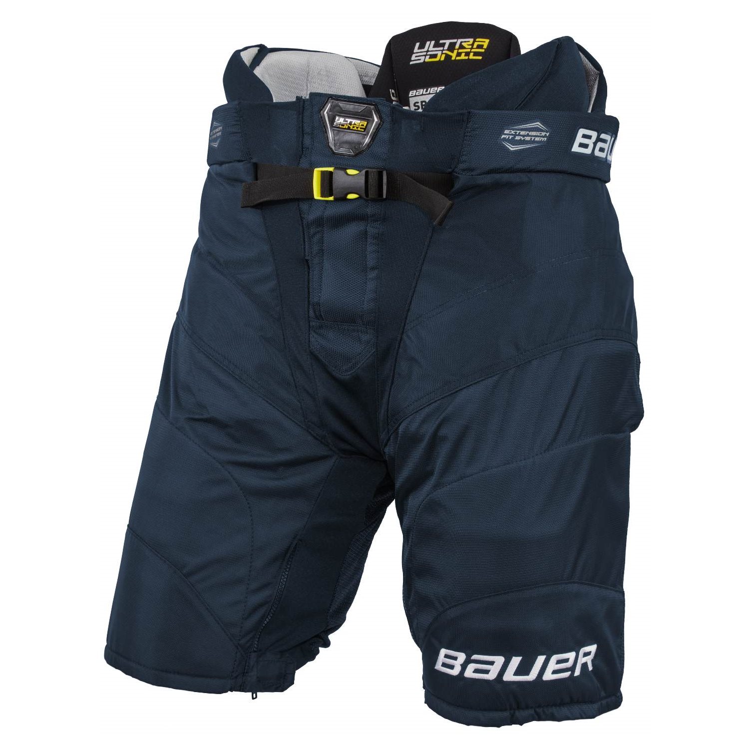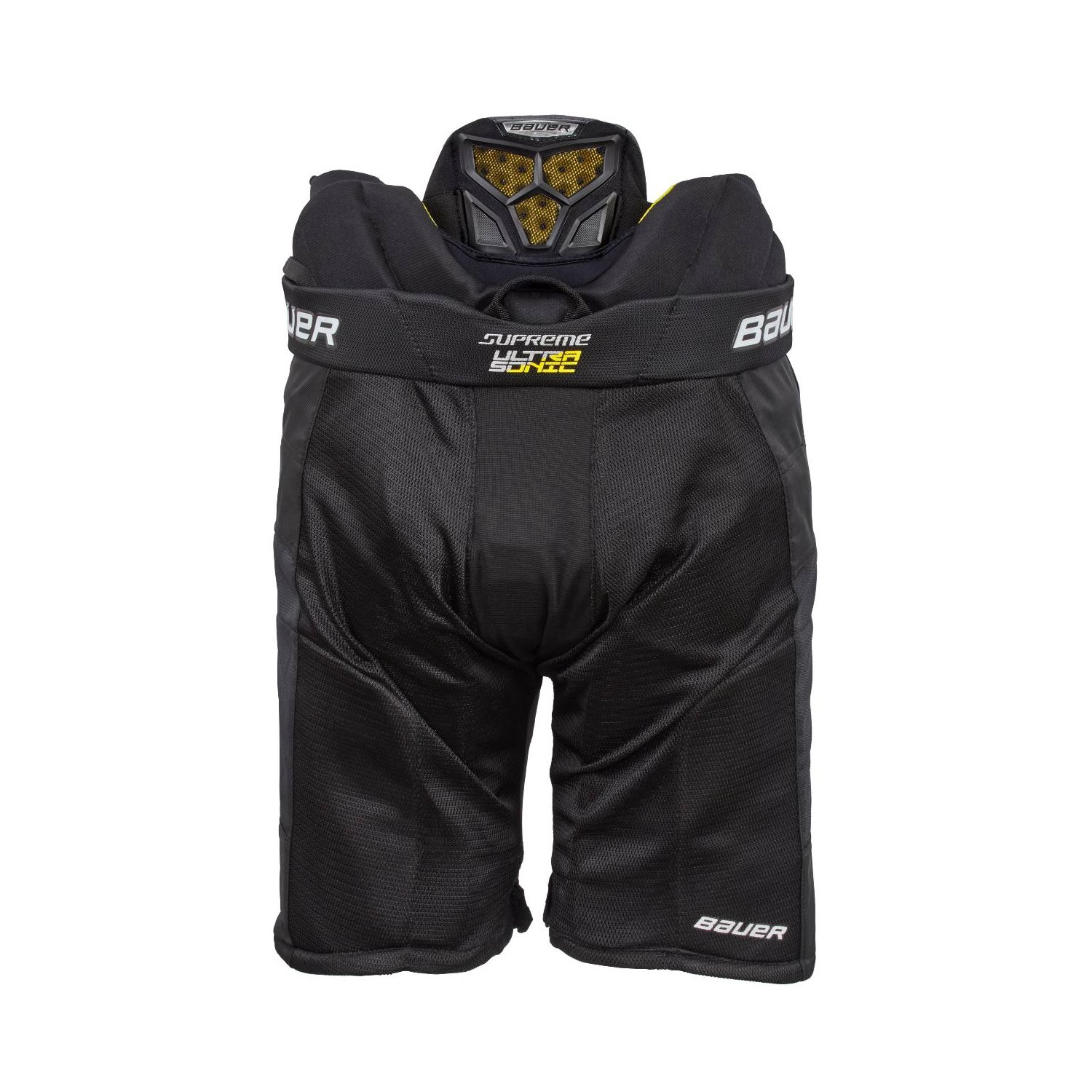 Bauer Supreme Ultrasonic buksen er en PRO bukse designet for å maksimere beskyttelse og tillate maksimal bevegelighet. I hoftepartiet finnes teknologien AMP split og freeflex nyre, som sikrer at spilleren kan bevege seg uhindret og samtidig være trygg på at beskyttelsesdelen holder seg på plass.